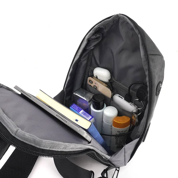Tinyat Logo personalizable Estilo informal Moda Bolsos Hombre Mujer Deporte Bolso con USB Bandolera Bolsillo pecho